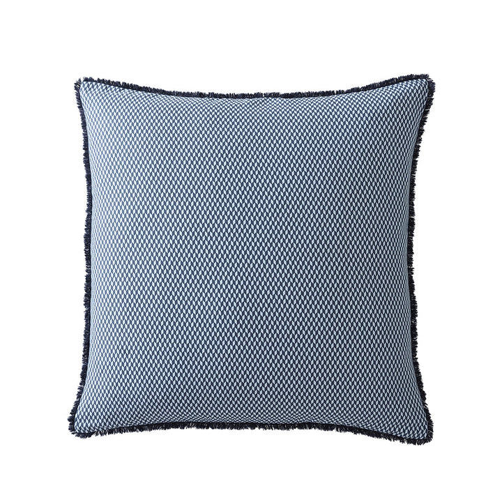 Logan and Mason Yarmouth Blue Square Filled Cushion has an urban mood with its unique fray edge trim and micro geo pattern.