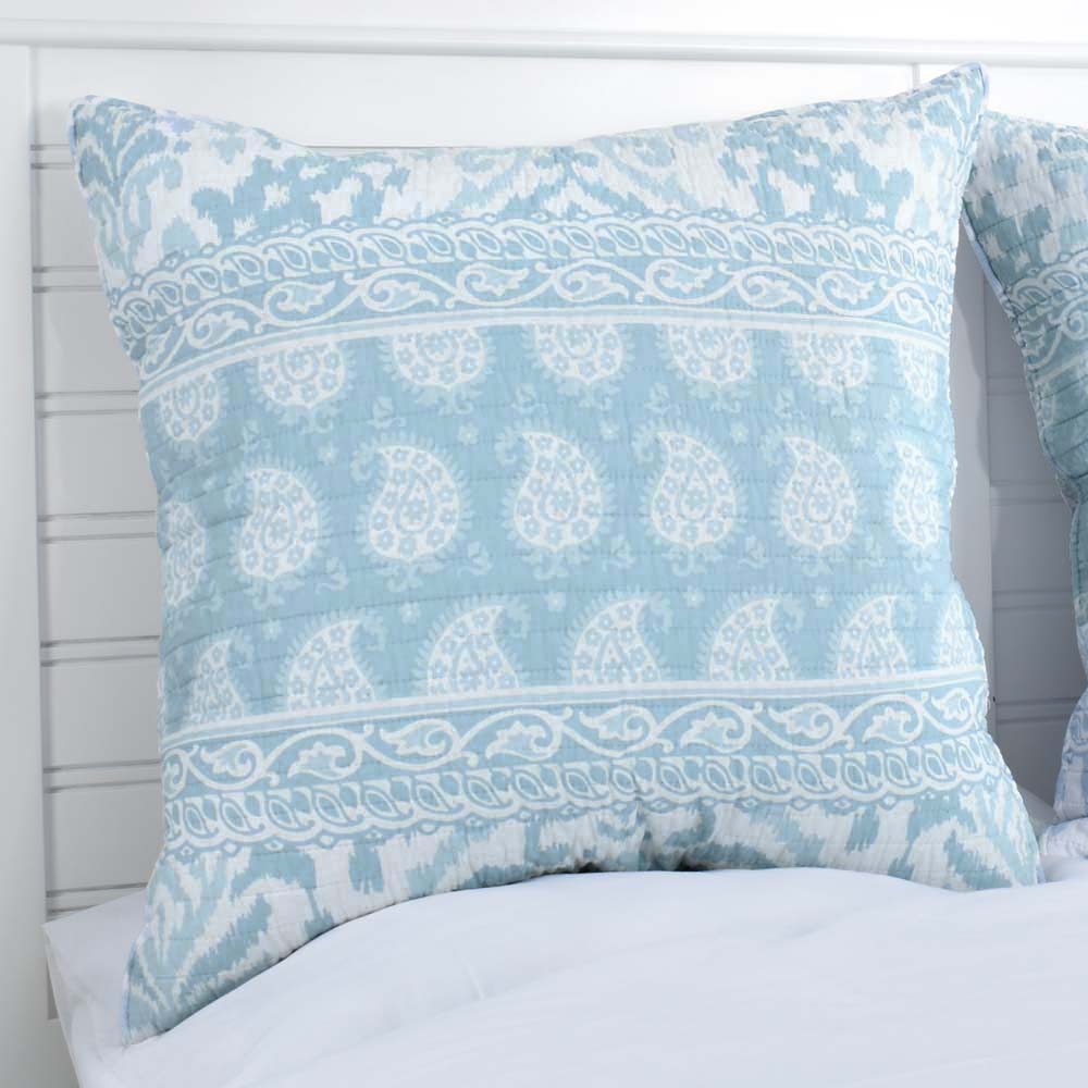 Classic Quilts York European Pillowcase features a paisley design in washed blue and white tones. The pillowcase is printed on an all cotton outer, and contains a light-loft cotton fill for breathability and comfort.